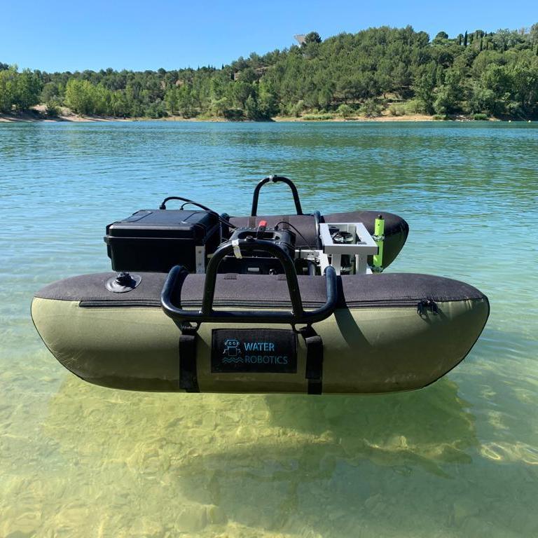 Ro-boat est une plateforme de 135x140cm démontable et gonflable qui permet à un opérateur d’effectuer des mesures et des prélèvements depuis la berge. Ce système permet d’assurer la sécurité de l’opérateur et facilite l’accès à des zones difficiles ou peu adaptées à un bateau de type hors-bord.